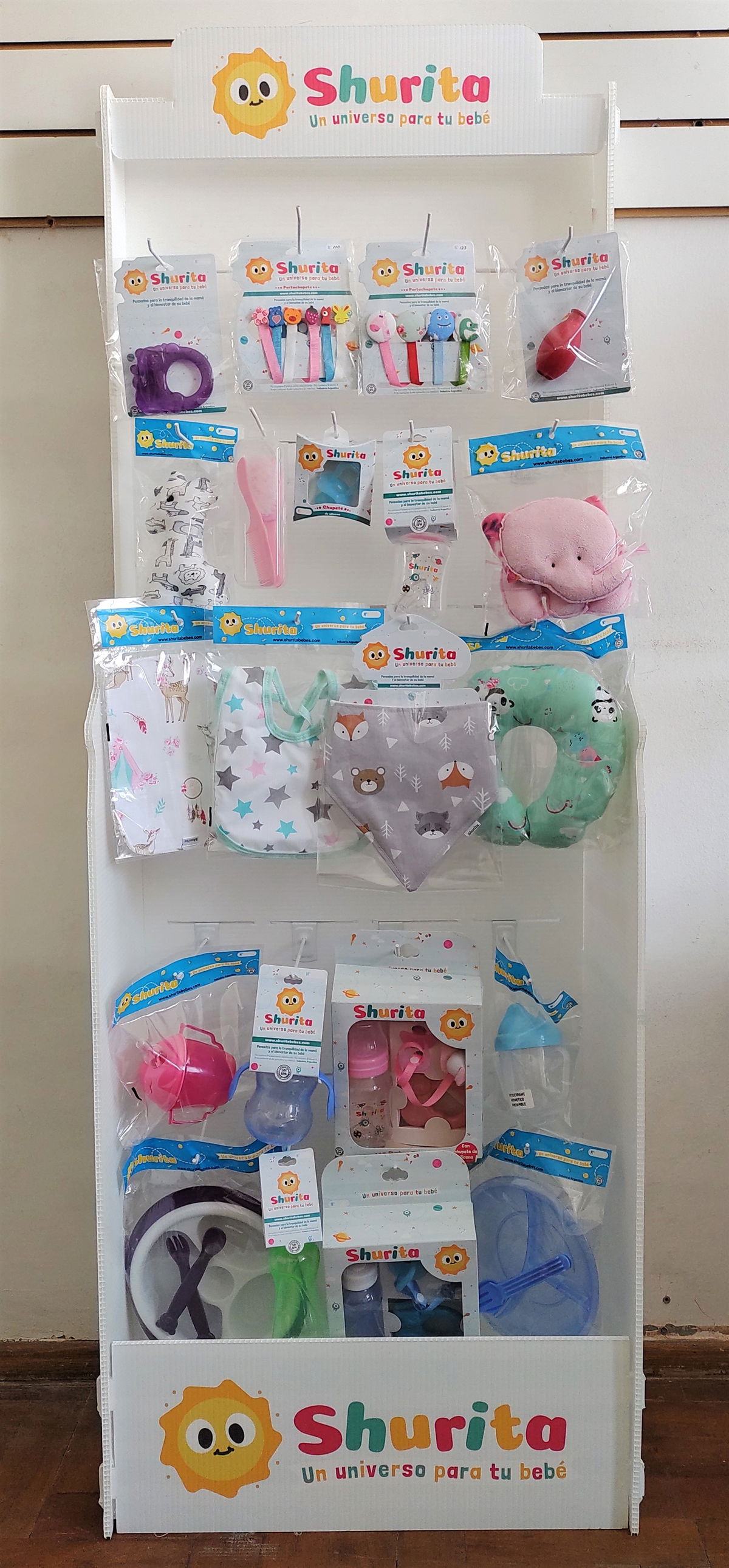 Incluye: ✔ Exhibidor con 20 ganchos ✔ Mordillo refrigerante X 12 unidades ✔ Cinta con prendedor por 6 unidades X 12 blisters ✔ Cinta con prendedor botón por 4 unidades X 12 blisters ✔ Chupete todo de silicona Nº 1 y 2, en cajita X 12 unidades ✔ Aspirador nasal X 12 unidades ✔ Set cepillo, peine y cartucherita X 12 unidades ✔ Sonajero sublimado X 12 unidades ✔ Sonajero de animales estampado X 12 unidades ✔ Babita de toalla y piqué X 12 unidades ✔ Bandana de piqué en perchita X 12 unidades ✔ Babero redondito X 12 unidades ✔ Cuellito de algodón X 12 unidades ✔ Mamadera translúcida X 12 unidades ✔ Mamadera boca ancha X 12 unidades ✔ Mamadera pepona con asas X 12 unidades ✔ Baby Set en caja X 6 unidades ✔ Baby Set Deluxe en caja X 6 unidades ✔ Vaso antiderrame con asas X 12 unidades ✔ Plato térmico con cubiertos X 6 unidades ✔ Taza Infantil X 12 unidades ✔ Plato 3 divisiones con cubiertos X 6 unidades *BPA Free, libre de ftalatos *Descartar este o cualquier otro producto dañado