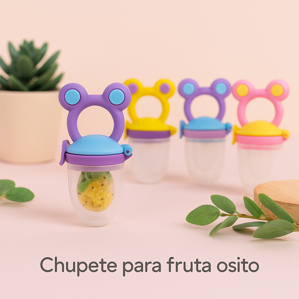 *Abra la tapa, coloque un pedacito de fruta o verdura en el interior de la tetina, al succionar sale el alimento por los orificios. A disfrutar!