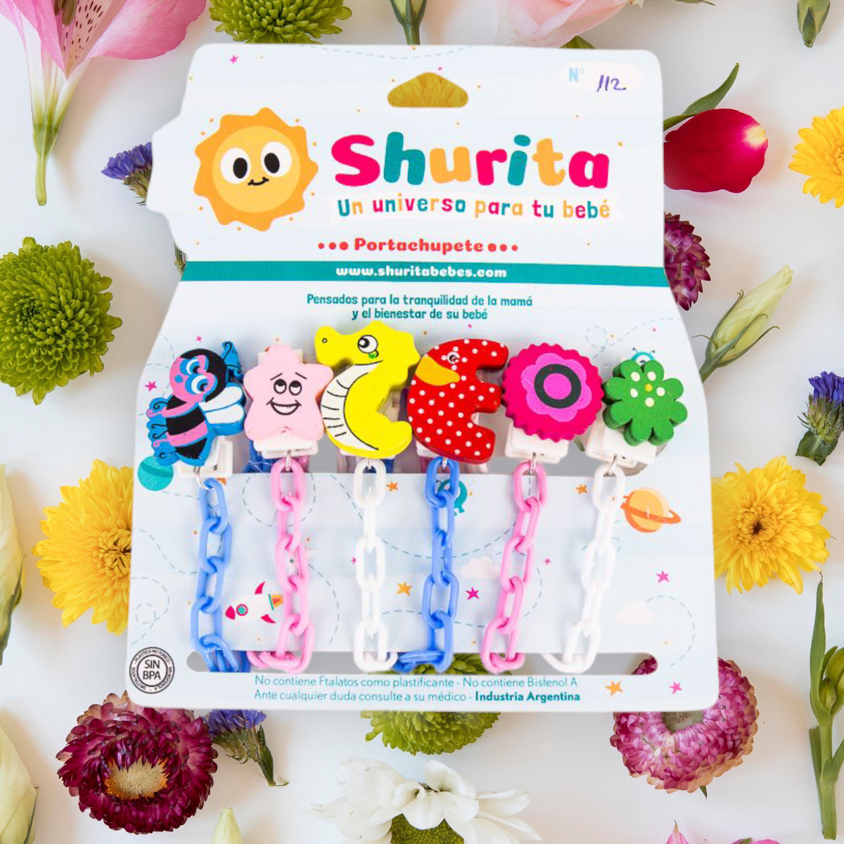 *Cocodrilo plástico, cadena plástica, muñequito de madera