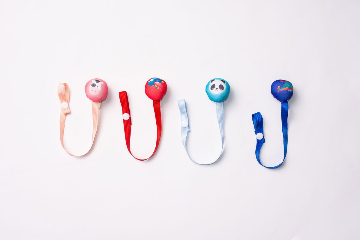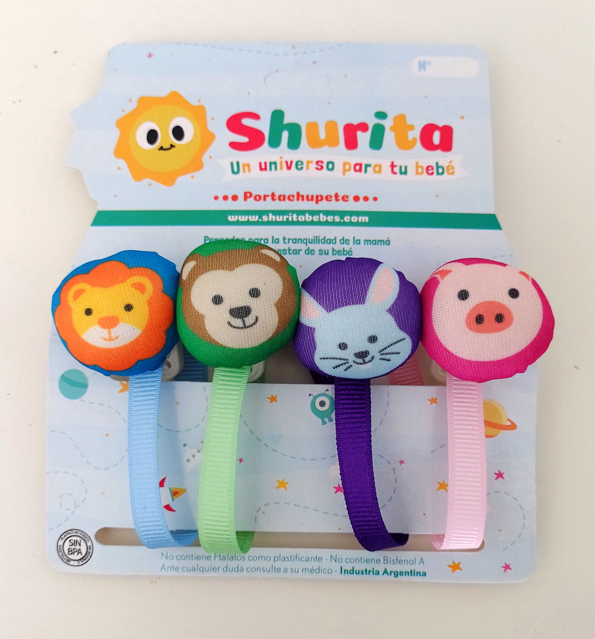Portachupete con prendedor peluche sublimado por 4 unidades.