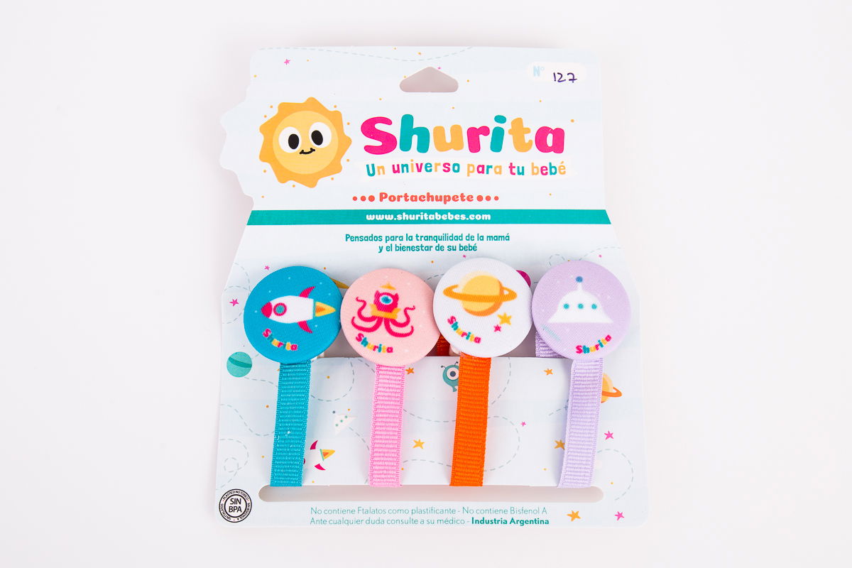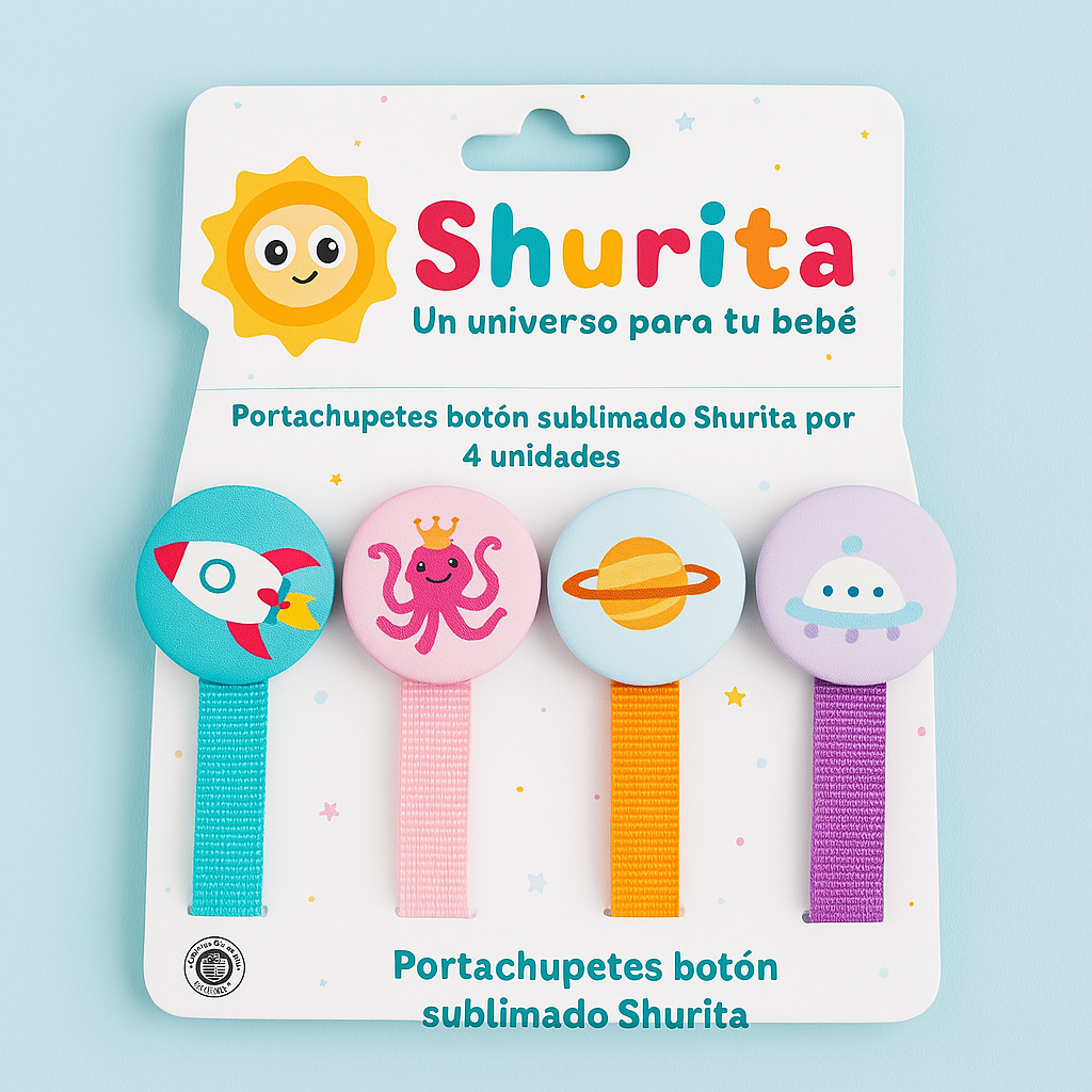 Portachupete con prendedor Shurita sublimado por 4 unidades