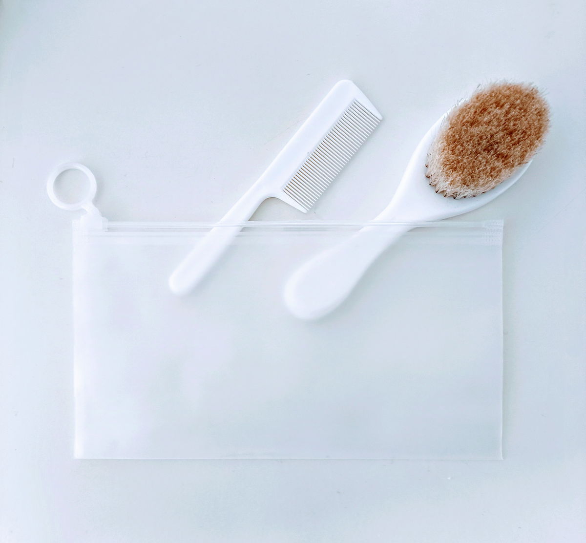 Incluye: cepillo y peine en cartuchera con cierre hermético