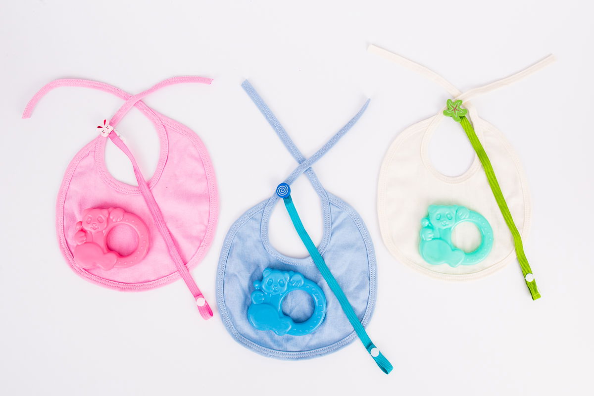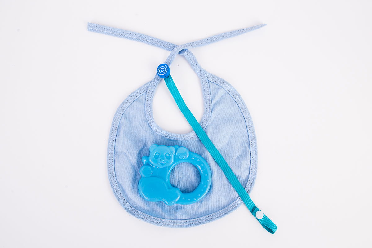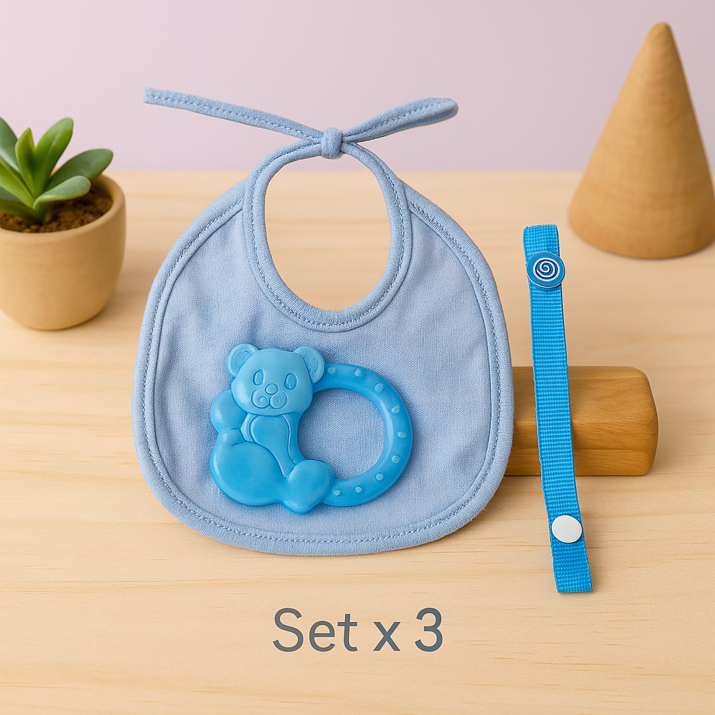 Babero algodón con portachupete y mordillo refrigerante