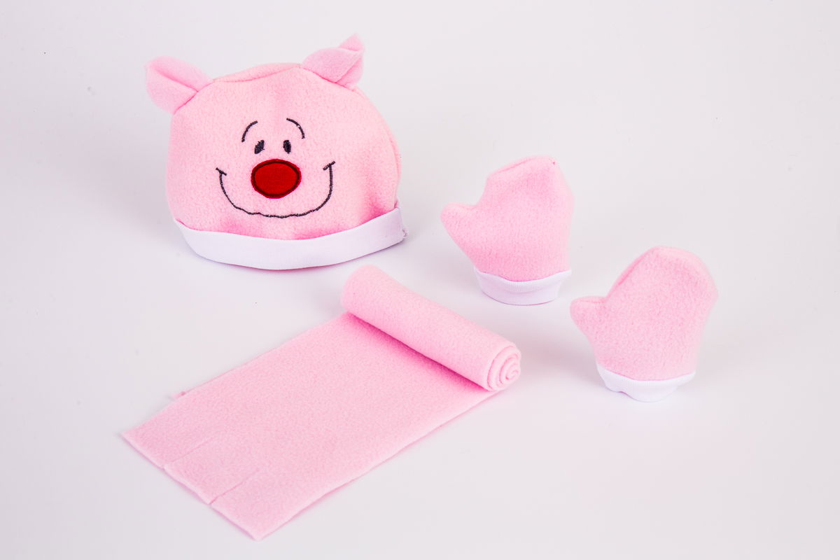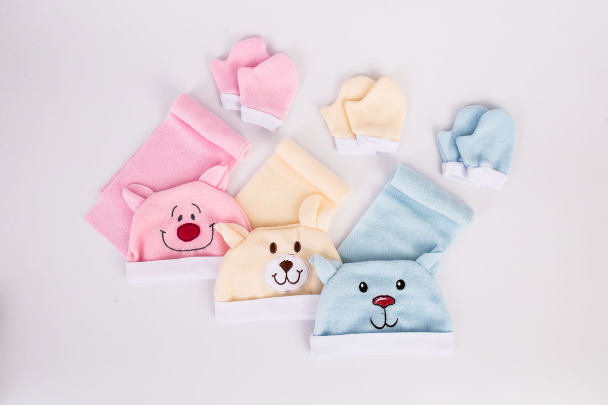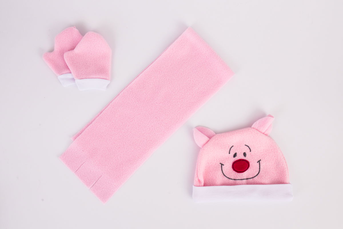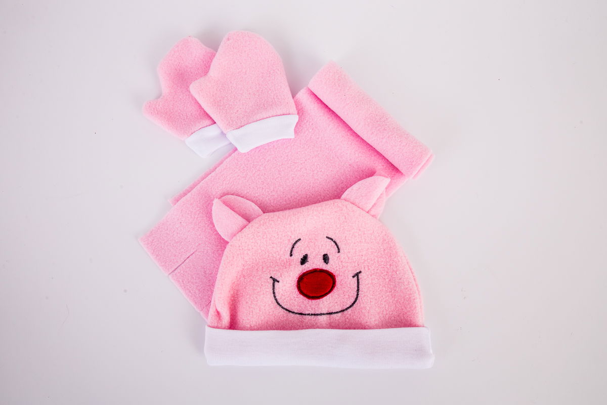 Set polar bordado: gorro bordado con orejas, bufanda y guantes