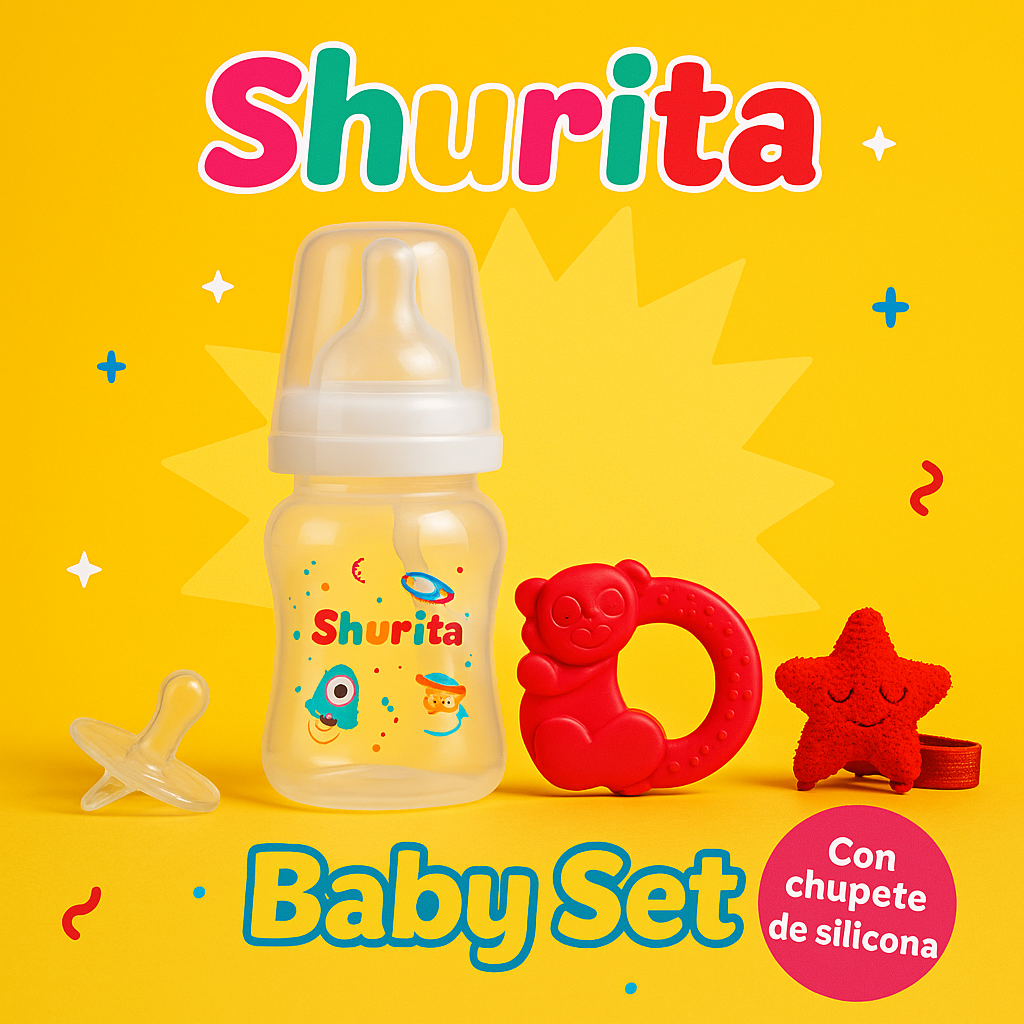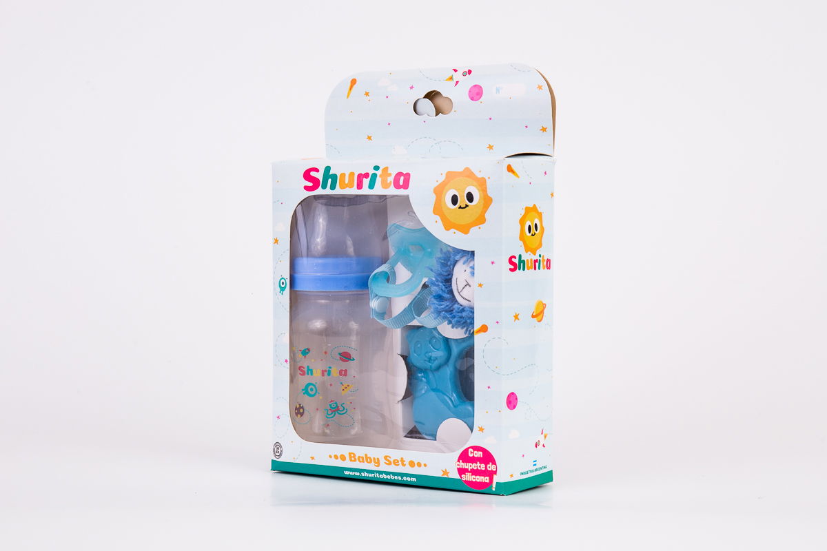 Incluye: Mamadera boca ancha, chupete todo silicona, mordillo refrigerante y portachupete con peluche