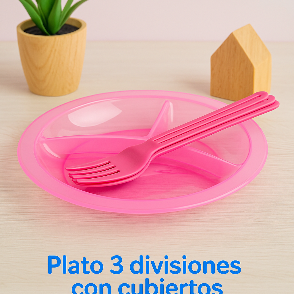 Plato 3 divisiones con tenedor y cuchara encastrables