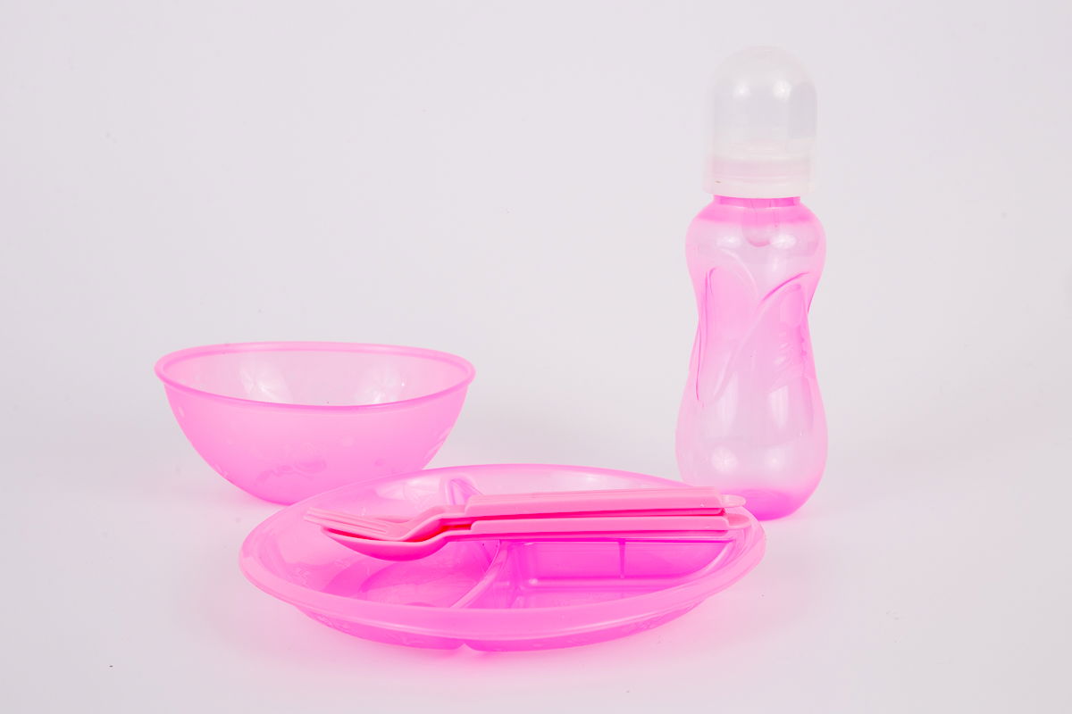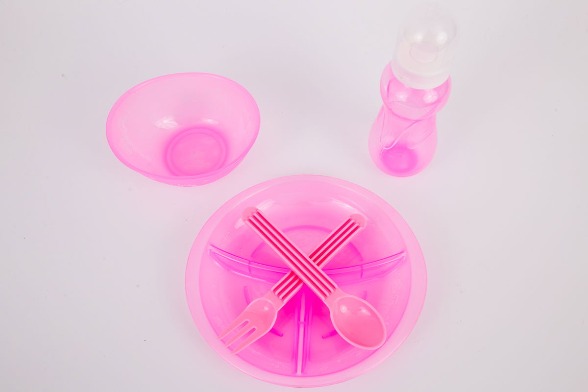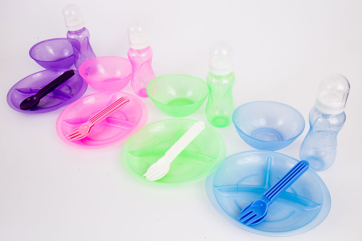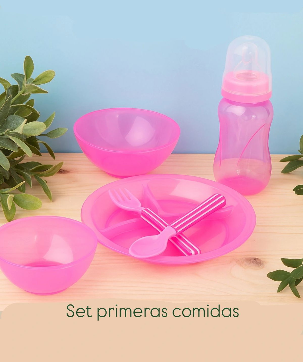 *Plato 3 divisiones, bowl, mamadera translúcida y cubiertos encastrables.