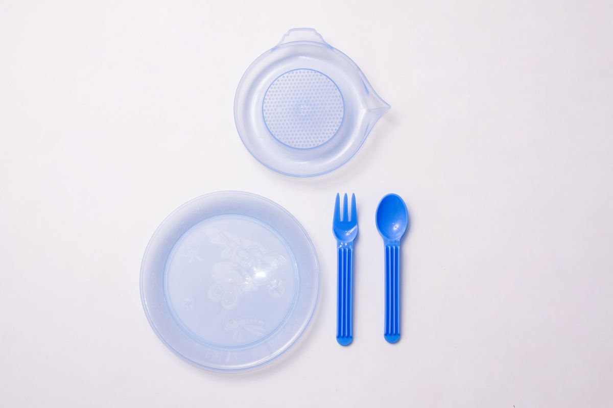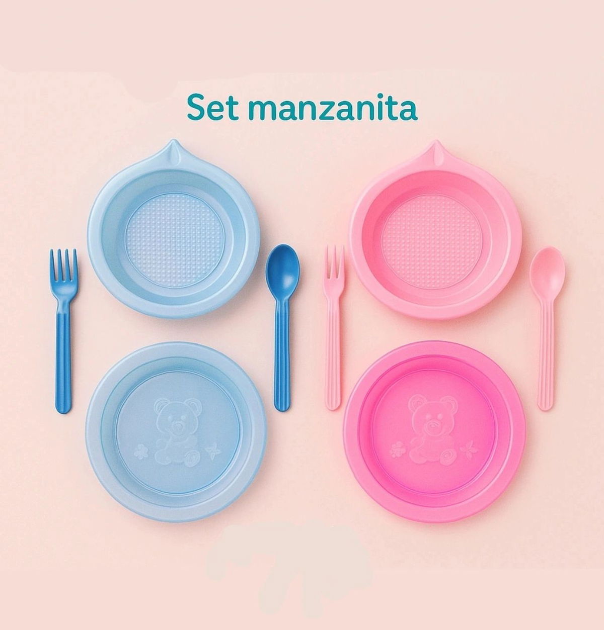 *Plato Rallador de Manzana, plato playo y cubiertos encastrables con vertedor